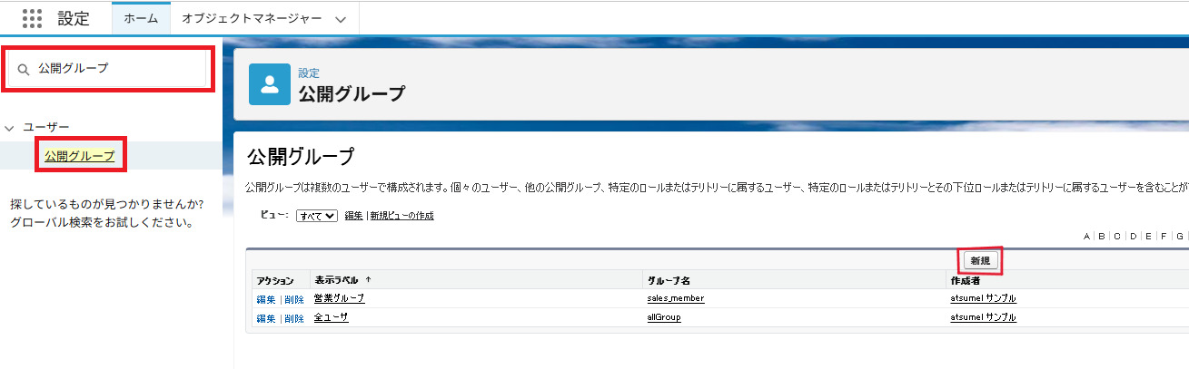 続いては、全ユーザーを対象とした公開グループの作成方法をご紹介します!