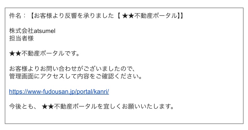 ポータルサイトから届く反響メール。