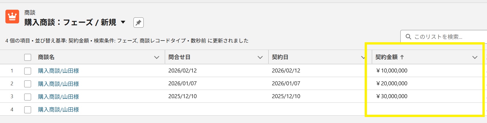 これにより、未入力データが並び替えの邪魔をせず、実際に値が入っているレコードをスムーズに確認することができます。