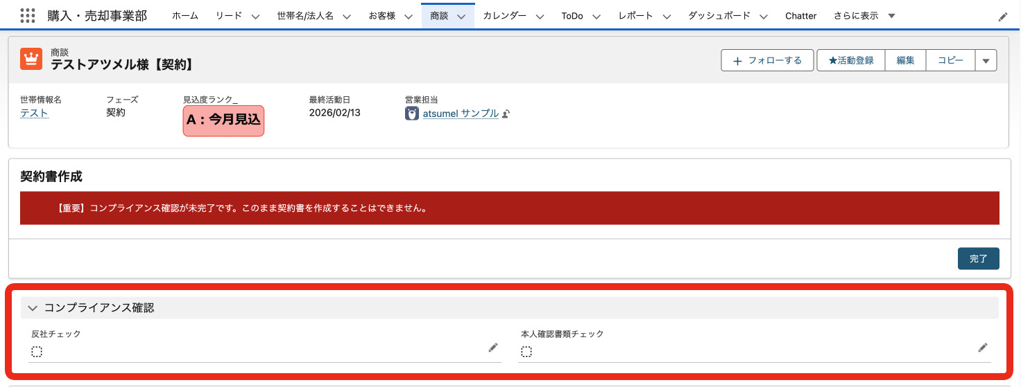 「コンプライアンス確認が完了していないことに気づかず、そのまま契約書を作成してしまった……」