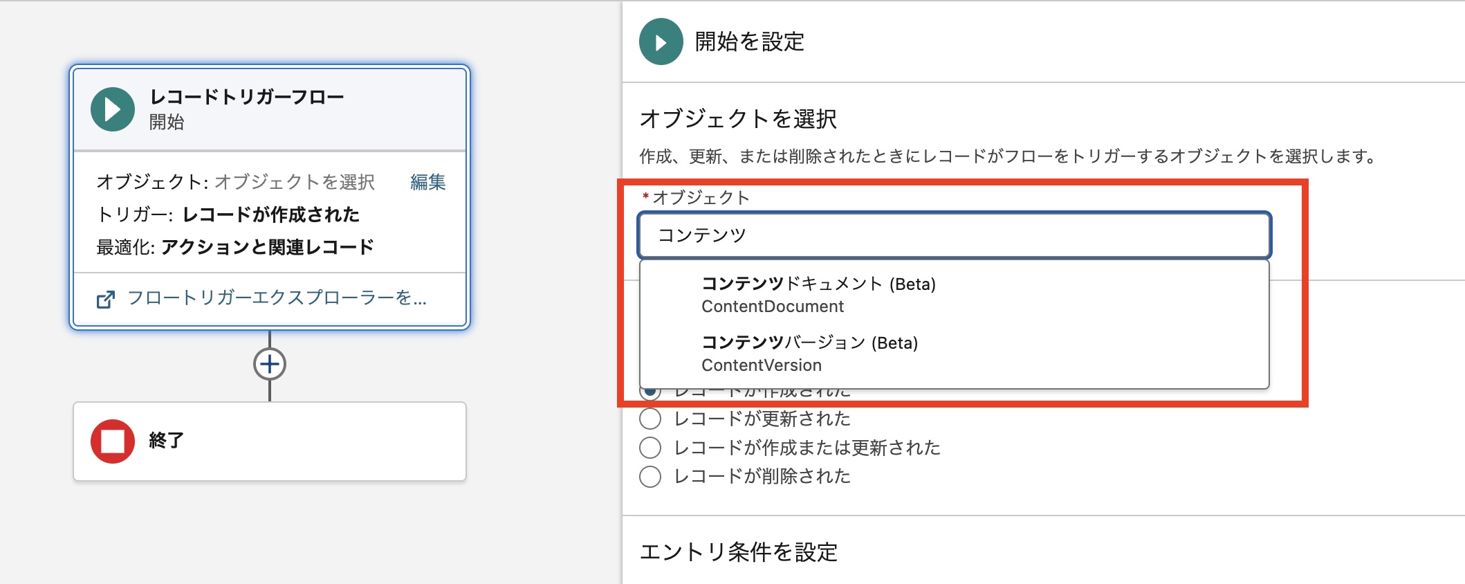 しかし、今回のSpring '26アップデートにより、これらを直接トリガーに指定できるようになります。これにより、「ファイルがアップロードされた瞬間」を起点としたノーコード開発が可能になります。